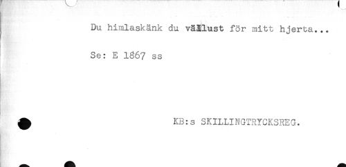 //// } " " ** '"** ** -' .. -v -'.< - -'. //// Du himlaskänk du våålust för mitt hjerta... //// Se: E 1367 ss //// ^ KB:s SKILLINGTRYCKSREG. ////
