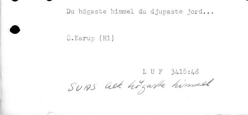 //// Du högaste himmel du djupaste jord... //// O.Karup (Hl) //// L U F 3416:4^ //// LE ** \ . . ..... ...." ////
