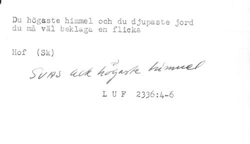 //// Du högaste himmel och du djupaste jord //// du må väl beklaga en flicka //// Hof (Sk) //// L U F 2336:4-6 ////