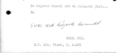 //// Du högaste himmel och du fallande jord... //// NORD. MUS. //// E.U. 451. Visor, 1. s.169 //// . -... -__ -___-_____ ////