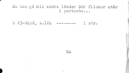 //// Du kan gå till andra länder Dar flickor står //// i portarna... //// ta //// B 23-24:2, s.124 ----- 1 str. ! //// ! //// < //// ! //// { //// - < //// //// /n //// t. ////