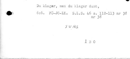 //// Du klagar, men du klagar dumt, //// ^ 6:6. FÖ-JC-LE. S.L.S. 46 s. 112-113 nr 38 //// nr 3g //// - //// ÅBO //// - ////