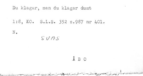 //// Du klagar, men du klagar dumt //// 1:6, KO. S.L.S. 352 s.937 nr 401. //// N. ////