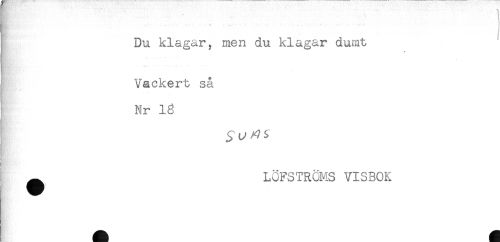 //// i Du klagar, men du klagar dumt //// * //// Vackert så //// C. - //// Nr 13 //// ^ LÖFSTRÖMS VISBOK ////