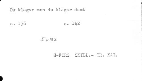 //// Du klagar men du klagar dumt //// r //// ! //// i //// i //// i //// S. 136 S* 142 r //// ! //// « //// t //// J1/19-S ; //// H-FORS SKILL.- TR. KAT. ////
