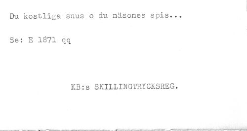 //// Du kostliga snus o du näsones spis... //// Se: E 1671 qq //// K3:s SKILLINGTRYCKSREG. ////