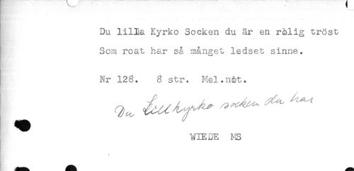 //// *'- **' - - "* - - * - - '-* - ' -- - * *-*' //// Du lilla Kyrko Socken du är en rölig tröst //// * * - . - . - . .. ^ ....... //// I Som roat har så månget ledset sinne. //// Nr 123. 8 str. Mel.nmt. //// ^ WIEDE MS //// * ////
