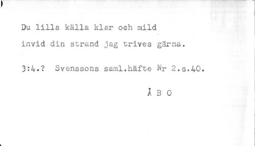 //// Du lilla källa klar och mild //// * //// invid din strand jag trives gärna. //// t //// 3:4.? Svenssons saml.häfte Nr 2.s.40. //// ÅBO //// : //// 4 //// ) //// ( //// t ////