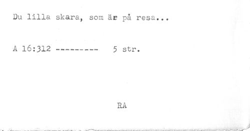 //// Du lilla skara, som äe på resa... //// A 16:312 --- 5 str. //// RA //// . .... ___ ____^__ ////