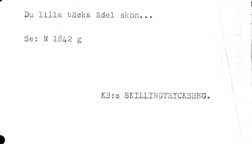 //// Du lilla täcka ädel skön... //// Se: N 1^42 g ! //// ! //// t //// it //// ! //// i //// K3:s SKILLINGTRYCKSREG. ////