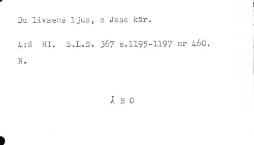 //// Du livsens ljus, o Jese kär. //// < //// t //// ! //// * ...... ' '*} //// Hl. S.L.S. 367 s.1195-H97 nr 460. //// N. //// 1 //// i //// i //// 1 //// ÅBO ////