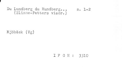 //// Du Lundberg du Hundberg... s. 1-2 //// (Blinne-Petters visor.) //// Mjöbäck (Vg) //// I F G H : 3310 ////