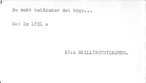 //// Du makt behärskar det höga... //// Se: Zz 1S31 a //// i //// t //// t //// KB:s SKILLINGTRYCKSREG. //// } //// ! //// i //// < //// ! //// i ////