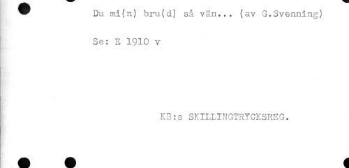 //// ^ Du mi(n) bru(d) så vän... (av G.Svenning) //// Se: E 1910 v //// KB:s SKILLINGTRYCKSREG. ////
