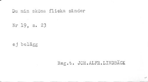 //// Du min sköna flicka sänder //// Nr 19, s. 23 //// ej belägg //// Reg.t. JCH.ALFR.LINDBÄCK ////