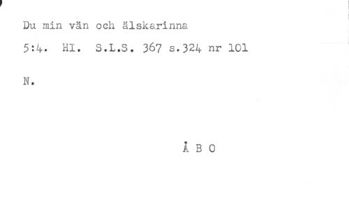 //// Du min vän och älskarinna //// 5:4. Hl. S.L.S. 367 s.324 nr 1C1 //// N. //// ÅBO ////