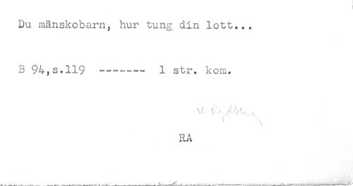 //// Du mänskebarn, hur tung din lott... //// B 94, s.119 ---- 1 str. kom. //// RA ////