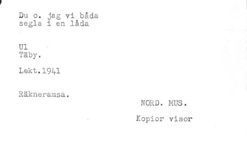 //// Du o. jag vi båda //// segla i en låda //// U1 //// Täby. //// Lekt.1941 //// Räkneramsa. //// NORD. MUS. //// Kopior visor ////