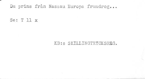 //// Du prins från Nassau Europa framdrog... //// Se: T 11 x //// KB:s SKILLINGTRYCKSREG. ////