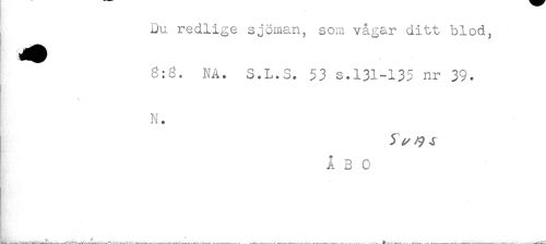 //// Du redlige sjöman, som vågar ditt blod, //// 3:3. KA. S.L.S. 53 s.131-135 nr 39. //// \ //// N. //// 3 ^ j //// ÅBO ////
