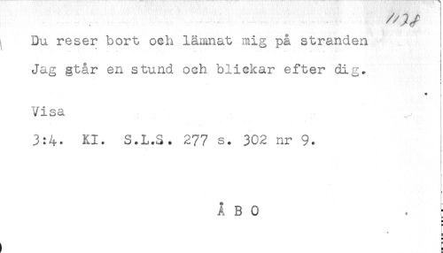 //// Du reser bort och lämnat mig på stranden //// ... . .... . . .. . . - i //// i //// ! //// < //// f //// Jag gtår en stund och blickar efter dig. //// i //// . //// Visa //// * - . //// 3:4. Kl. S.L.S. 277 s. 302 nr 9. //// t //// i //// : //// ÅBO . } //// < //// - ////