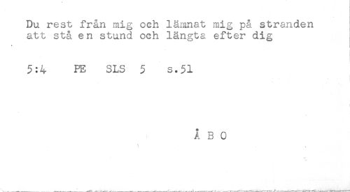 //// Du rest från mig och lämnat mig på stranden //// att stå en stund och längta efter dig ] //// 5:4 RE SLS 5 s.51 //// , * - //// t //// ÅBO //// % ////