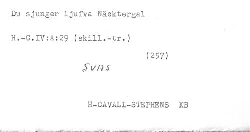 //// Du sjunger ljufva Näcktergal //// H.-C.IV:A:29 (skill.-tr.) //// (257) //// H-CAVALL-STEPHENS KB ////