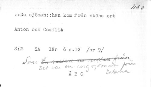 //// - //// ::Du sjöman::han kom från sköne ort //// Anton och Cecilia //// 8:2 SA INr 6 s.12 /nr 9 //// /A B cT ZkA^. ////