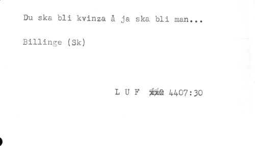 //// Du ska bli kvinza å ja ska bli man... //// Billinge (Sk) //// L U F ^a 4407:30 ////