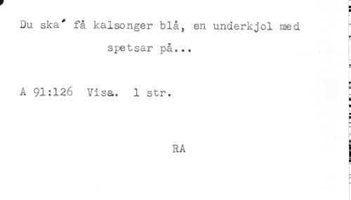 //// Du ska* få kalsonger blå, en underkjol med //// - //// i //// { //// spetsar på*.. //// A 91:126 Visa. 1 str. ! //// 5 //// H //// H //// RA j //// ( ////