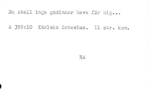 //// Du skall inga gudinnor hava för mig... //// A 359:10 Kärleks Cateches. 11 str. kom. //// RA ////