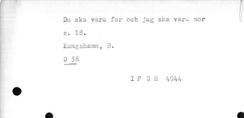 //// ! Du ska vara far och jag ska vara mor //// * " - //// s. 18. //// - * //// Kungshamn, 3. //// # . //// i F G H 4944 ////
