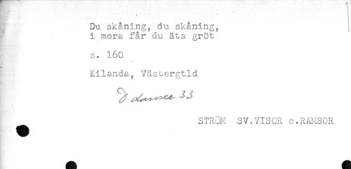 //// ; - .... ..... ^ ; //// Du skåning, du skåning, //// i mora får du äta gröt //// s. 160 //// t //// -. . ' //// Kilanda, Västergtld //// S TRÖM S V. VIS OR o. RMS CR ////