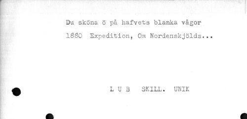 //// Du sköna ö på hafvets blanka vågor //// ..... *...... * * * * . -. . . .... //// 1330 Expedition, Om Nordenskjölds... //// ^ L U 3 SKILL. UNIK //// - ////