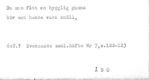 //// Du som fått en hygglig gumma //// < //// t //// bör mot henne vara snäll, //// i //// j //// f //// 6:3.? Svenssons saml.häfte Nr 7,s.122-123 //// ) //// r ////