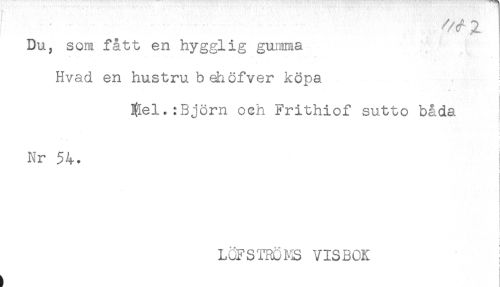 //// Du, som fått en hygglig gumma //// Hvad en hustru b eiriöfver köpa //// . //// $el.:3jöm och Frithiof sutto båda //// f //// Nr 54. //// ! //// LuFSTRÖMS VISBOK //// ! //// i ////