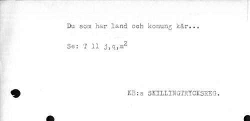 //// ' ' j //// ...... ! //// Du som har land och konung kår... //// -. . - - * < * . //// - ^ . .. //// Se: T 11 //// KB:s SKILLINGTRYCKSREG. ////