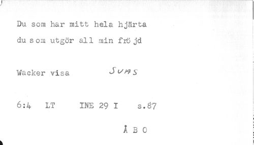 //// Du som har mitt hela hjärta //// du som utgör all min frö jd //// t //// ? //// f //// r //// i //// Wacker visa Jt/^i //// t //// 6:4 LT INE 29 I s.67 //// H //// L //// * ////
