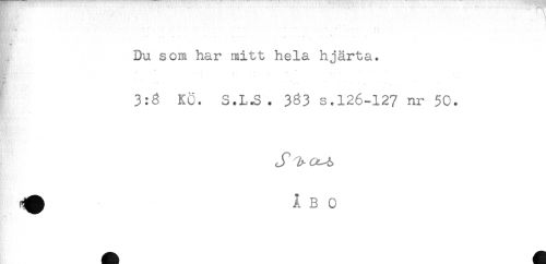 //// Du som har mitt hela hjärta. //// 3:3 Kö. S.L.S. 3^3 s.126-12? nr 50. //// * //// ^ ÅBO ////