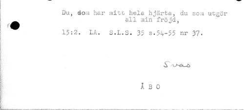 //// Du, dom har mitt hela hjärta, du som utgör //// ^^ all min fröjd, //// 15:2. LA. S.L.S. 35 s.54-55 nr 37- //// ÅBO //// L_____ ////