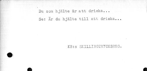 //// -* - * //// Du som hjälte är att dricka... //// Se: Är du hjälte till att dricka... //// KB:s SKILLINGTRYCKSREG. ////