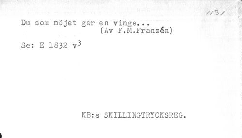 //// * :t //// Du som nöjet ger en vinge. . . //// (Av F.M.Franzén) //// Se: E 1832 y3 //// ! //// = //// : //// i //// < //// i //// ! //// { //// < //// ! //// i //// i //// i //// KB:s SKILLINGTRYCKSREG. j ////