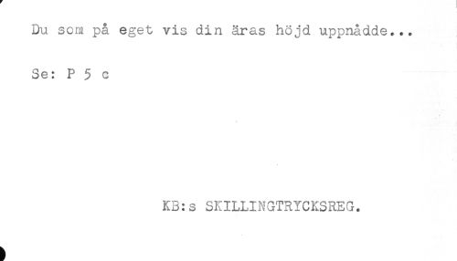 //// Du som på eget vis din äras höjd uppnådde... //// Se: P 5 c //// s //// KB:s SKILLINGTRYCKSREG. ////