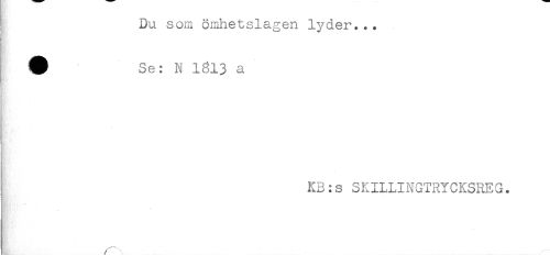 //// ! Du som ömhetslagen lyder... //// § //// # Se: N 1813 a //// j //// t'- //// I KB:s SKILLINGTRYCKSREG. //// E - ////