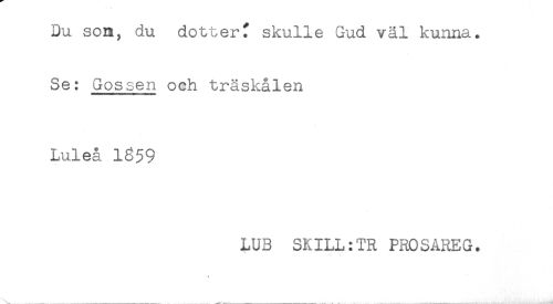//// Du son, du dotter' skulle Gud väl kunna. //// Se: Gossen och träskålen //// Luleå 1359 //// LUB SKILL:TR PRO SAREG. ////