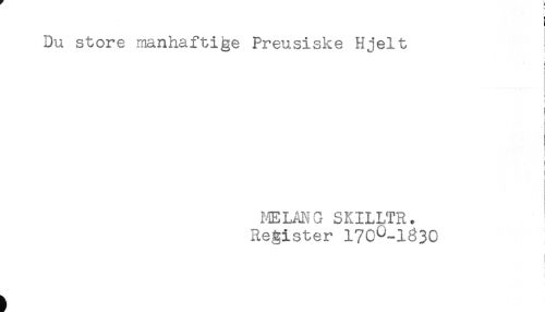 //// ! //// Du store manhaftige Preusiske Hjelt //// t //// i //// i //// MELANG SKILLTR. //// Register 170O-I830 ////