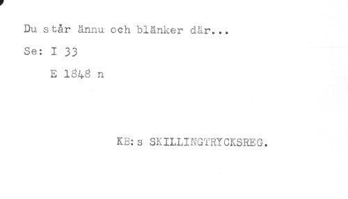 //// Du står ännu och blänker där... //// Se: I 33 //// E 1348 n //// KB:s SKILLINGTRYCKSREG. ////