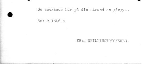 //// I Du suckande hav på din strand en gång... //// Se: R 1846 a //// * //// KB:s SKILLINGTRYCKSREG. ////