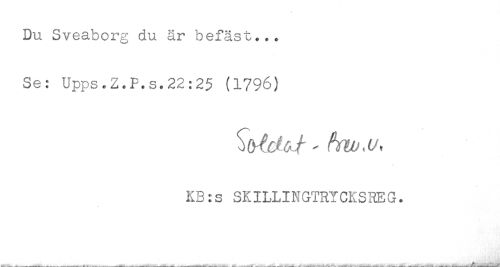//// Du Sveaborg du är befäst... //// Se: Upps.Z.P.s.22:25 (1796) //// KB:s SKILLINGTRYCKSREG. ////