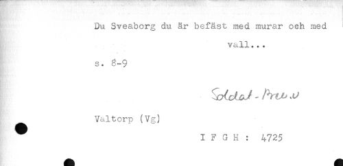 //// Du Sveaborg du är befäst med murar och med //// vall... //// - * //// S. 8-9 //// Valtorp (Vg) //// ^ I F G H : 4725 ////